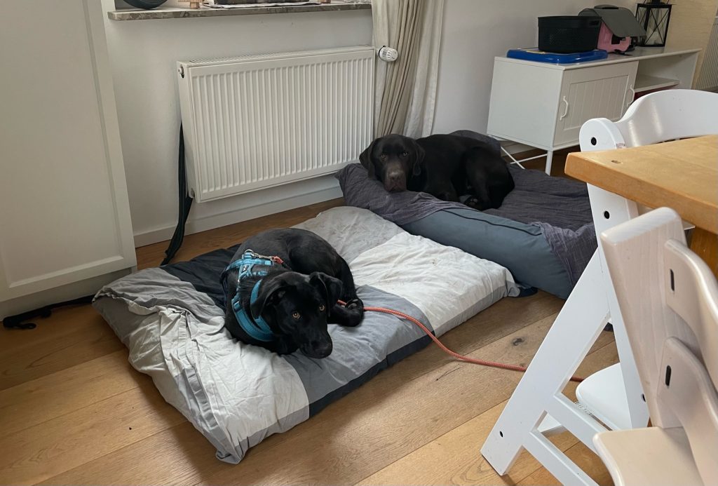 Ich habe meine Menschen überrascht, denn ich bin stubenrein und habe eine ruhige Nacht verbracht. Sie üben schon kleine Dinge mit mir, die wichtig sind für unseren Alltag: Autofahren, an der Leine gehen, Sitz, meinen Namen… das macht mir total Spaß, denn dafür gibt es Leckereien.