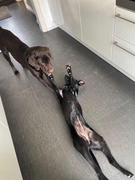 Mit etwas Training und Ruhe hat sie aber schnell begriffen, dass die Tiere nicht gefährlich sind sondern einfach anders aussehen und akzeptiert jetzt z.B. Pferde auch schon sehr nah. Das ist gut denn sie kann auch bei Ausritten begleiten wenn sie ausgewachsen ist. Leni ist ein absoluter Glücksgriff, eine totale Knutschkugel und schon nach einem Tag hatten wir das Gefühl, dieser Hund gehört einfach zu uns und passt wie kein anderer in unsere Familie. Sicherlich werden wir in der Pubertät die eine oder andere Grenze nochmal klären müssen, aber das kriegen wir alles hin.