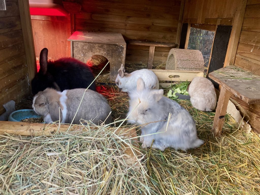 Etwas später meinte meine neue Mama, dass es gut für Emma und mich wäre, wenn wir noch mehr Freunde haben. Also zogen wir um nach draußen. Hier kann ich richtig viel hoppeln und wenn mir zu kalt sein sollte, gibt es da so ein rotes Licht, das schön warm macht, das ist super.