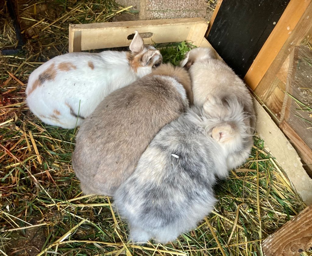 Hier ist vielleicht was los, ich wusste ja gar nicht, dass es so viele andere Kaninchen auf der Welt gibt. Als ich herkam, lernte ich gleich zwei kennen, aber die waren ein bisschen gemein zu mir. Da hat meine neue Mama gesagt, dass das so nicht geht und sie jetzt eine Freundin für mich sucht. Und dann zog Emma zu mir. Auch wenn Emma nicht richtig sehen kann, so sind wir ganz schnell gute Freunde geworden und ich hab von ihr gelernt, wie toll es ist, mit anderen Kaninchen zu kuscheln und nicht mehr allein zu sein. Das war sooo schön nach 11 Jahren ohne Kaninchenfreunde.