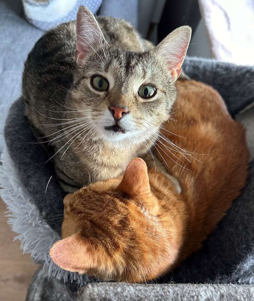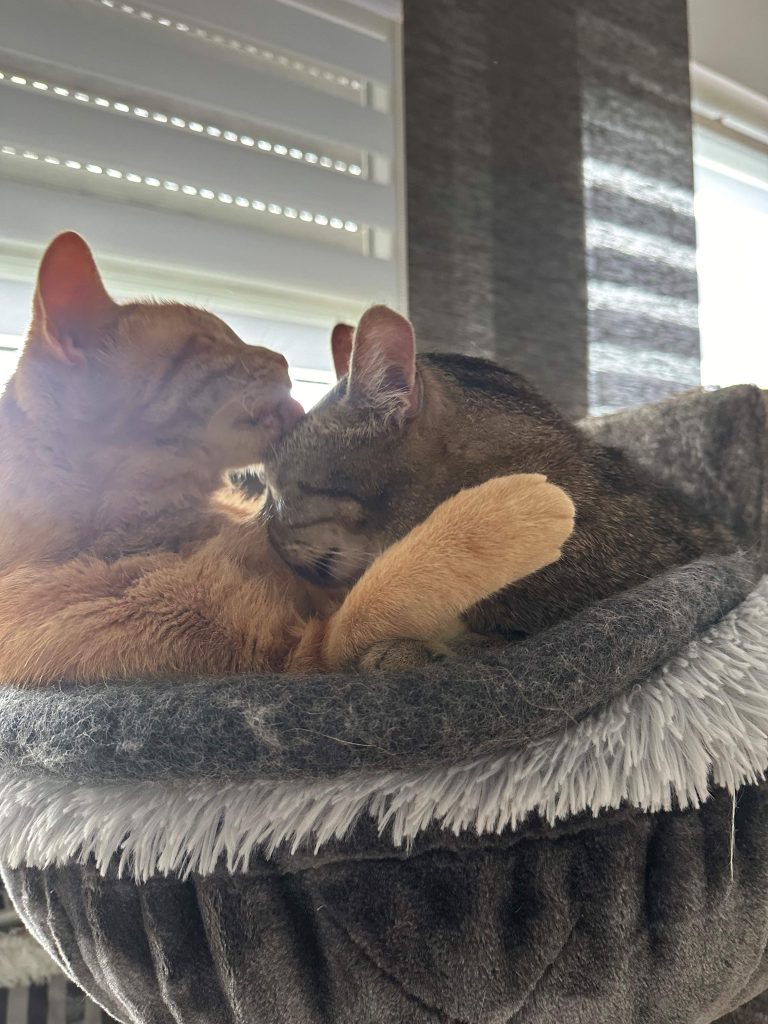 Grüße gehen raus von Gismo! (ehem. Maik) Er ist nun bereits eine Weile bei uns und hat sich super eingelebt! Gismo ist wild, lebhaft, verspielt und zudem ein absoluter Schmusekater. Anfangs noch sehr scheu und ängstlich hat er sich zusammen mit Leo unserem bereits vorhandenen, sehr souveränen und gefestigten Kater schnell eingelebt, sich sicher gefühlt und gut zurechtgefunden. Die beiden jagen, toben, raufen, spielen und kuscheln gern zusammen. Am liebsten sitzen sie gemeinsam auf der Aussichtsplattform mit Blick in den Garten. Anbei ein paar Bilder 🙂