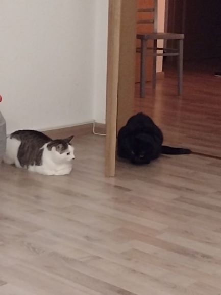 Meine schon vorhandene Katze (Paula) hat Mila im ersten Monat eher als Feind gesehen und viel gemurrt aber durch Milas nonchalante Art hat sich das nun auch gelegt. Da Mila mehr auf Menschen fokussiert als auf ihre feline Mitbewohnerin, leben die zwei nun sowieso eher nebeneinander her und machen/sind wenig wirklich miteinander.