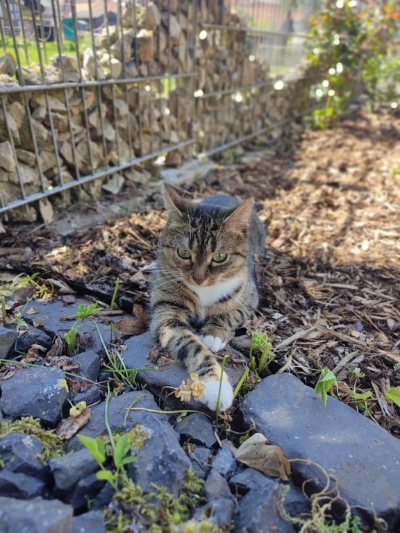 hier ein kleines Update von Miss Marple, die wir eigentlich nur noch Missy nennen. Seit Ende Mai ist sie Freigängerin und hat dabei sehr viel Freude. Zuerst wurde alles sehr vorsichtig erkundet und sie blieb nur im Garten. Mittlerweile erkundet sie die nähere Umgebung, aber immer noch sehr nah am Zuhause.