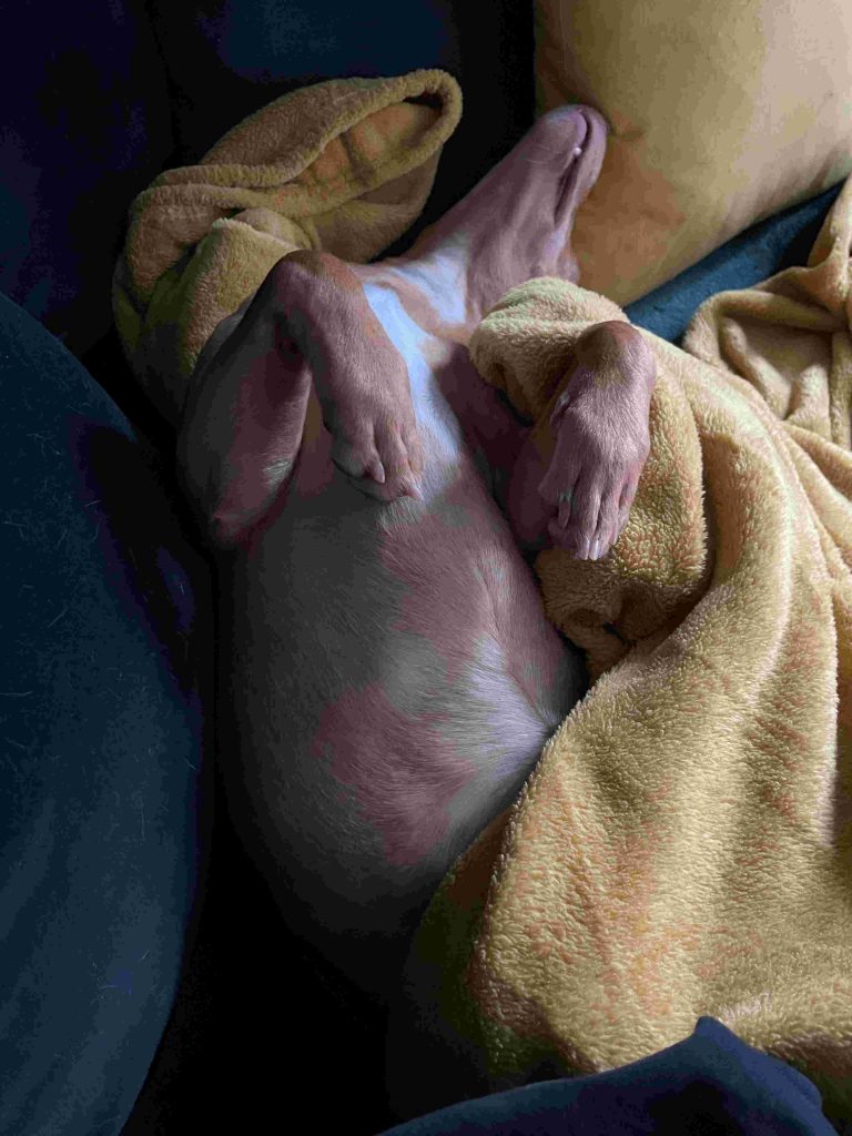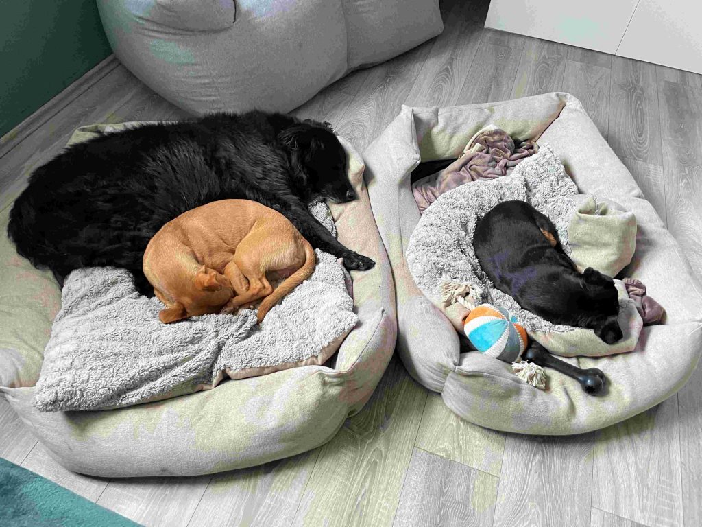 nun bin ich eine Woche in meinem neuen zu Hause. Ich habe mich schon an viele Geräusche hier gewöhnt, manchmal höre ich aber auch Sachen, wie die Müllabfuhr oder Sägen in der Nachbarschaft und bin noch kurz verunsichert. Mit meiner Hundefamilie bin ich schon eng zusammengewachsen. Immer öfter kuscheln wir zu dritt auf der Couch oder im Körbchen. Mein liebster Schlafplatz ist im Bett. Ich muss noch lernen nicht aus Langeweile Sachen zu suchen und zu zerkauen, meine Menschen geraten dann in Aufregung und versuchen sie mir wegzunehmen. Ich gehe so gerne gassi, am liebsten an der langen Schleppleine, dann ist es wie frei laufen und ich kann alles erkunden. Herrchen und Frauchen loben mich ganz oft, weil ich schon so viele tolle Dinge kann und gut höre. Einmal habe ich die Kinder jetzt auch schon kennengelernt, das hat mir richtig viel Spaß gemacht, da die richtig viel Quatsch mit mir machen. Die Katze verwirrt mich etwas, da sie mich einfach nicht sehr nah an sich ran lässt. Wenn sie faucht, habe ich sogar ein bisschen Angst, dann gehe ich schnell ein Stück weg. Ich komme jeden Tag ein bisschen mehr hier an und alle sind froh mich hier zu haben. Im Anhang sind ein paar Fotos aus meiner ersten Woche in meinem neuen zu Hause. Ich wünsche euch ein schönes Wochenende.