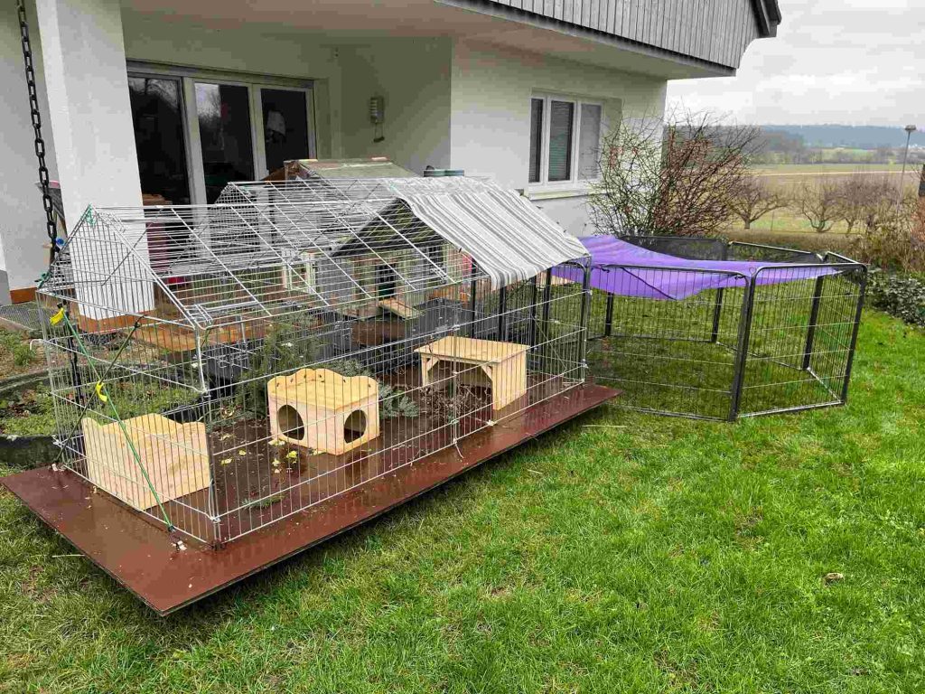 die zwei süßen Herzen sind gut bei uns angekommen und wir haben unsere wunderbare Kaninchenwelt erweitert. Das zweite gleiche Aussengehege auf dem Rasen stelle ich auf, sobald der Rassen etwas nachgewachsen ist 😄. Die Kaninchen haben zwei neue Namen bekommen und heissen jetzt Anna und Hops 😄. Ich sende freundliche Grüße aus