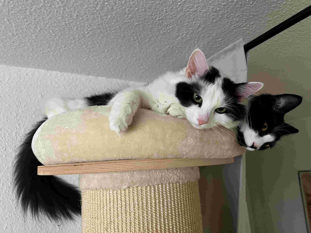 Tresco hat sich kaum verändert, er war nie ein Kater der sich ständig anfassen lassen möchte, morgens kommt er ins Bett und zeigt uns seine Kuschelseite, aber auch nur so lange bis wir aufstehen und er sein Fressen bekommt. Er akzeptiert uns voll und ganz, aber er ist eben nicht wie sein Bruder. Die beiden lieben sich auch wirklich heiß und innig. Und dann kracht es auch mal und die 2 benutzen die Wohnung als Parkour extreme. Brüder eben.