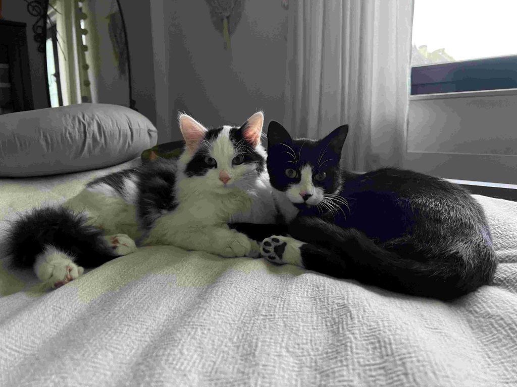 Mit unserer großen verstehen sich die beiden bisher leider noch nicht so. Bzw, sie faucht die beiden noch immer an, wenn sie sich zu sehr nähern. Wir hoffen dass sich das doch noch legen wird, weil die beiden Jungs schon wirklich riesig sind und unsere Katze sich irgendwann nicht mehr durchsetzen kann. Ich hänge euch mal ein paar Bilder an.
