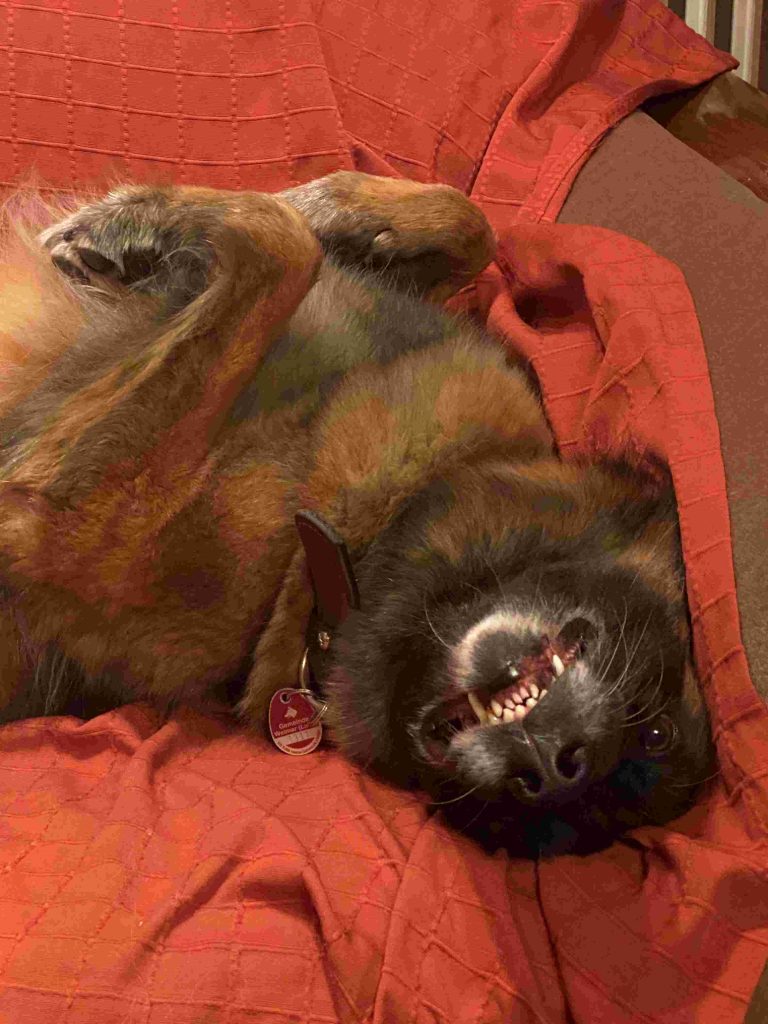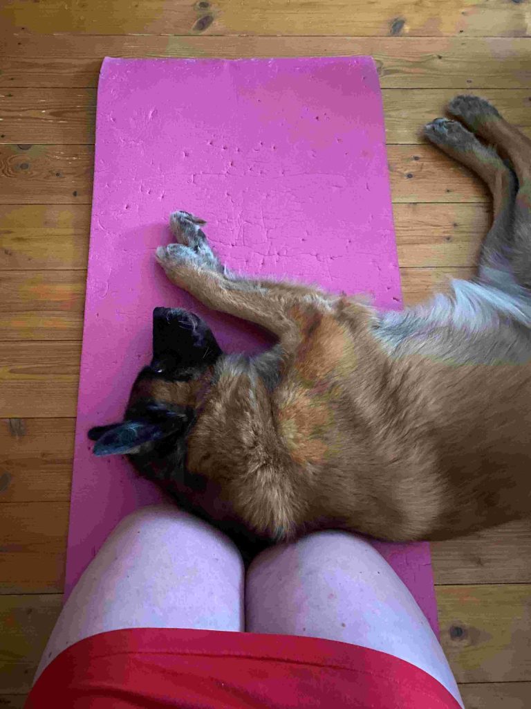 Das waren jetzt leider nicht alles positive Nachrichten. Wir glauben aber, dass Ronja sich hier weiterhin sehr wohl fühlt, vor allem im Haus. Morgens versucht sie oft uns am Aufstehen zu hindern und schlägt vor, dass wir lieber im Bett bleiben könnten. Da ist es sicher und bequem und es gibt keine Gefahren. Auch beim Hundetraining bietet sie oft an, lieber wieder ins Auto zu gehen, damit sie sich den Trainings-Situationen nicht stellen muss. Sie ist ein Hund, der eigentlich gar keinen Stress will. Aber natürlich kann es draußen nur besser werden, wenn wir immer wieder trainieren. Sie hat gut gelernt auch mal einige Stunden alleine zu Hause zu bleiben. Anfangs lag sie aufgeregt hinter der Tür. Sie hat zwar nicht gebellt und auch nichts kaputt gemacht, aber wir wussten, dass es ihr trotzdem nicht gut ging damit. Wir haben das immer wieder geübt und inzwischen hat sie die Sicherheit, dass wir immer wieder zurückkommen. Wenn wir heute die Tür aufmachen, kommt sie – mit einiger Verzögerung – verschlafen aus dem Bett gekrabbelt 🙂 Sie muss aber nicht viel alleine sein, wir nehmen sie ja meistens mit oder ich bin mit ihr im Homeoffice. Nur zum Einkaufen oder während eines Arztbesuchs muss sie dann eben mal kurz aushalten, aber das kann sie jetzt ganz entspannt.