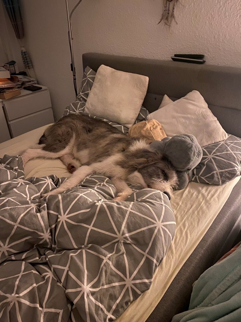 Salsa hat sich sehr gut eingelebt. Sie hat nach wenigen Tagen schon ihr Rabaukisches-Ich gezeigt 🙈 Sie liebt es nach wie vor Blödsinn zu machen und essen zu klauen. Mittlerweile nimmt sie schon ein 1,40m Bett für sich alleine ein, da habe ich nicht mehr viel Platz 😂 Salsa liebt das Wasser und hat ihren ersten Urlaub am Strand sehr genossen ☀️ Aus der kleinen ängstlichen Maus ist jetzt ein großes Mädchen geworden. Wir werden jeden Tag ein besseres Team und lernen jeden Tag voneinander. Wir können mittlerweile sehr gut auf unsere Bedürfnisse eingehen. Wir haben noch viel zu lernen aber darauf freuen wir uns sehr🥰
