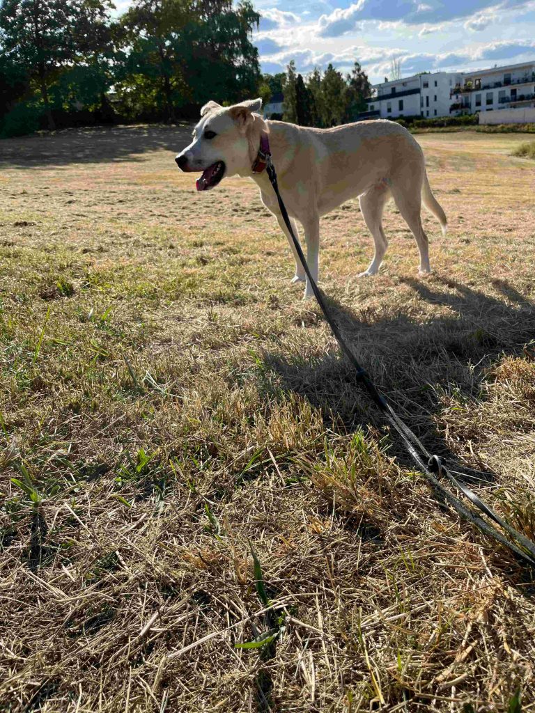 die Liebe Sonea ist seit dem 02.03.‘23 bei uns in der Familie. Sie kam hierher und anfangs war es etwas schwer sich an die neue Umgebung zu gewöhnen (sie hatte Angst vor Türen und vor Treppen, sie war generell sehr sehr ängstlich). Doch schon am zweiten Tag wo sie bei uns war haben wir ihr Vertrauen getestet und sie mit einem anderen Hund ohne Leine spielen lassen.