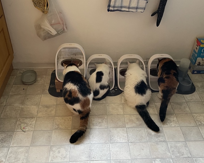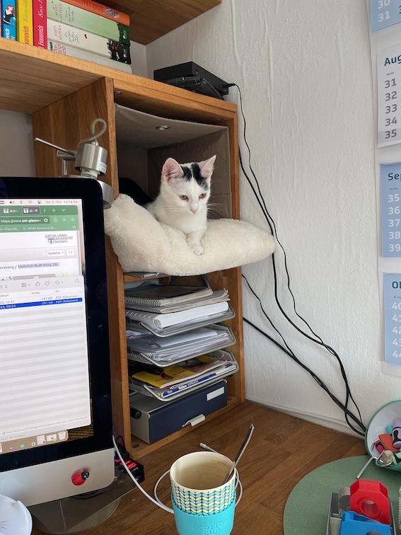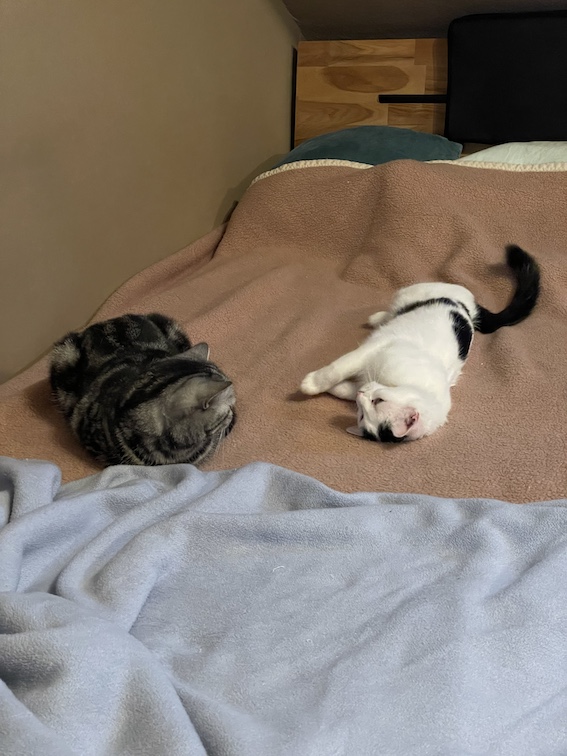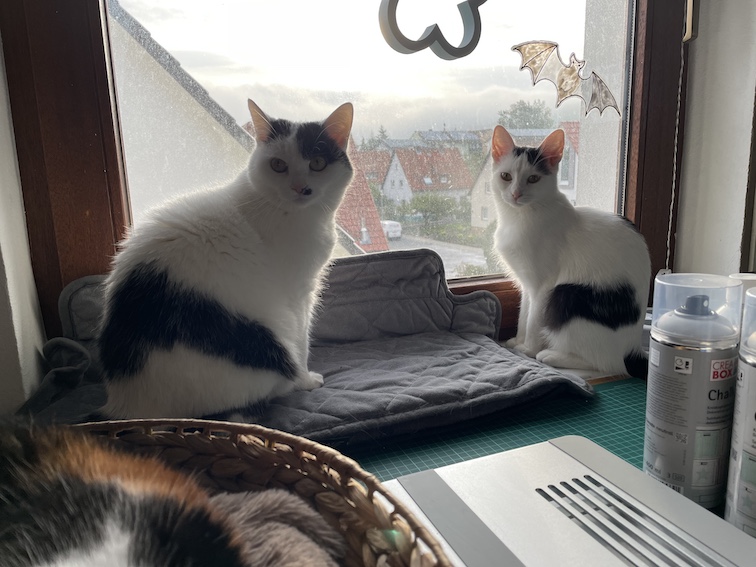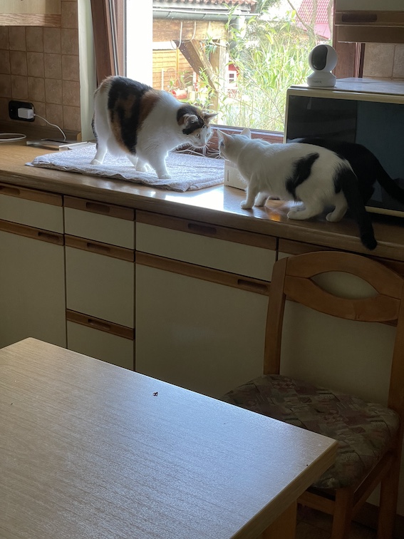 Mit unseren anderen vier Kätzchen 🐱🐱🐱🐱 hat die „Familienzusammenführung“ prima funktioniert. Anfangs gab es zwar jede Menge geknurre und gefauche von allen, aber andererseits auch sehr lustige Momente. Nach wenigen Tagen wurde es ruhiger und mittlerweile liegt man auch schon mal in gebührendem Abstand gemeinsam auf der Couch oder dem Bett. 😉