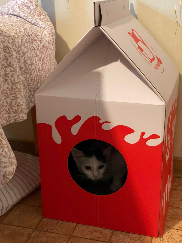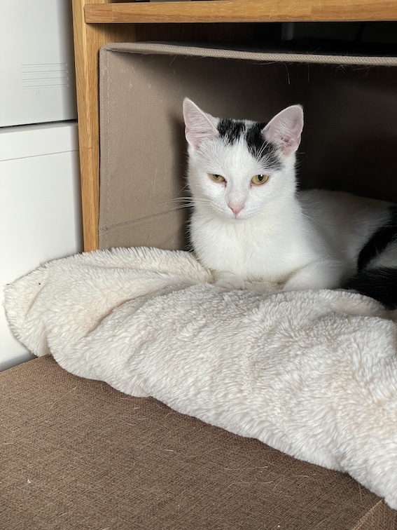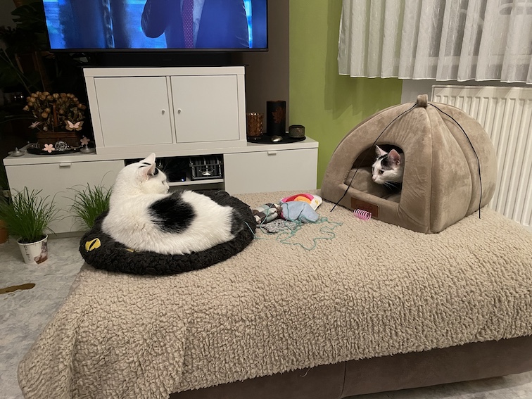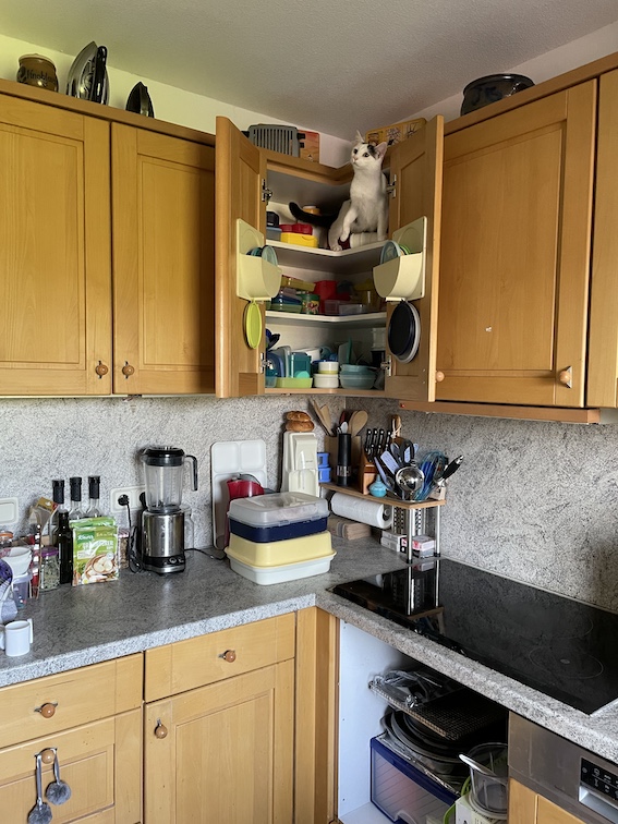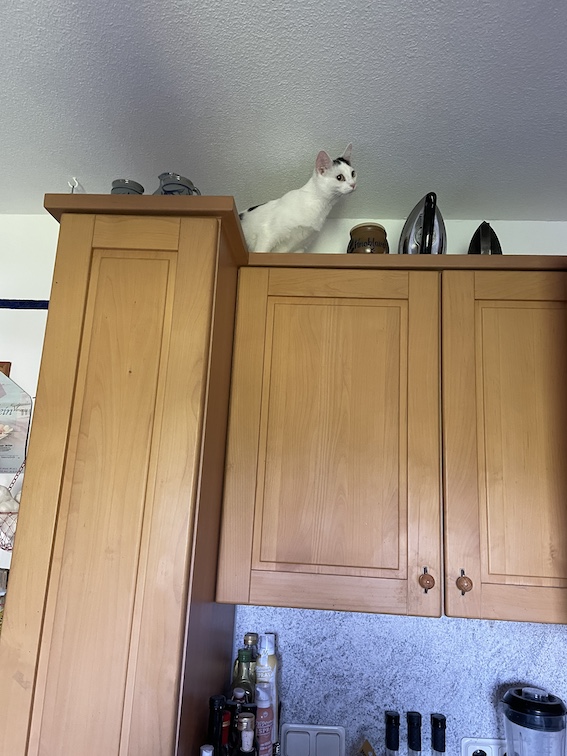 Im vergangenen Jahr ist meine Mutter gestorben und die untere Wohnung im EG unseres Hauses stand seit dieser Zeit mehr oder weniger leer. Aus diesem Grund hatten wir überlegt für Star – wir nennen sie übrigens jetzt Stella ⭐️- zunächst einmal nur die Küche im EG herzurichtet mit jeder Menge Kuschelplätzchen, Rückzugsorten und Spielsachen damit sie sich erst einmal an uns Menschen und an etwas mehr Platz und der Möglichkeit auch mal irgendwo hochzuspringen gewöhnen konnte und ich denke das war bis jetzt eine prima Idee.