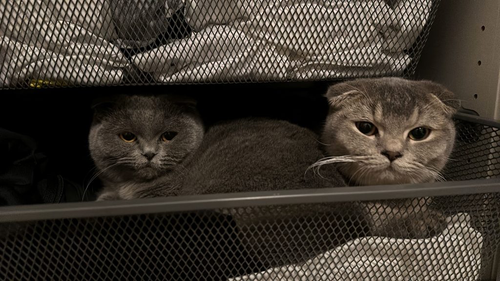 Im Alltag verschlafen die beiden wie die meisten Katzen den Tag. Zuhause wurden schon die besten Plätze – inklusive Schubladen – gefunden.