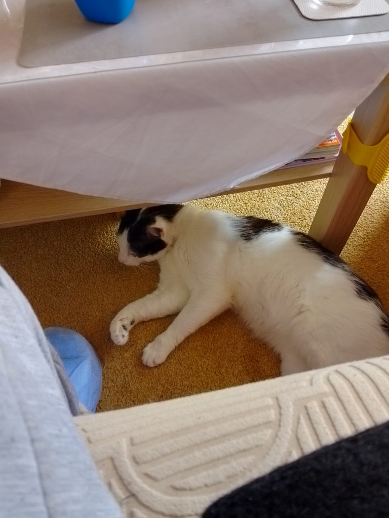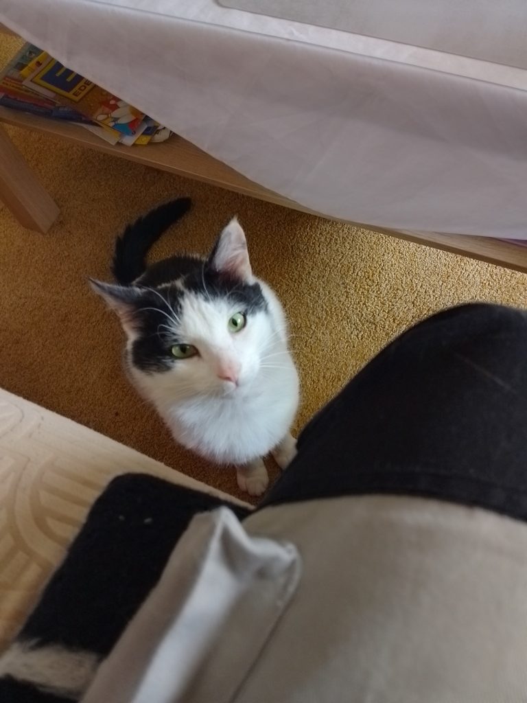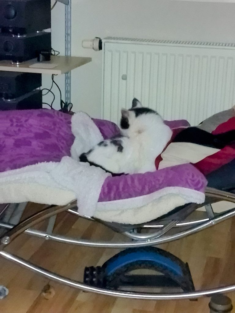 Er ist zwar noch etwas vorsichtig aber kommt jeden Tag etwas mehr schmusen.Und sein Nachtplatz ist eigentlich mein Liegesessel 😂jetzt gehört er wohl Nachts Taz 😀.