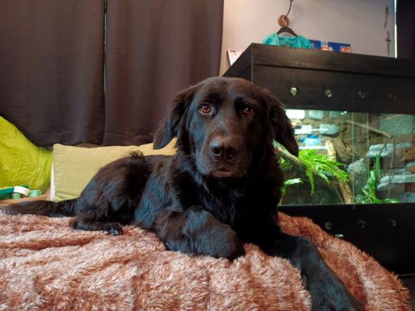 Hier zuhause kann man ihn wirklich nicht anders als ein Engelchen bezeichnen und er ist ein absolut kuscheliger Traumhund. Natürlich hat er draußen seine Probleme und seine Leinenaggression ist nach wie vor stark ausgeprägt, aber ich trainiere jeden Tag mit ihm und bin überzeugt, dass sich das mit der Zeit, viel Geduld und viel Auslastung gut in den Griff bekommen lässt. Und selbst, wenn das nicht der Fall wäre (was ich nicht glaube, da wir schon gute Fortschritte gemacht haben), hätte er bei uns trotzdem sein Für-Immer-Zuhause gefunden.