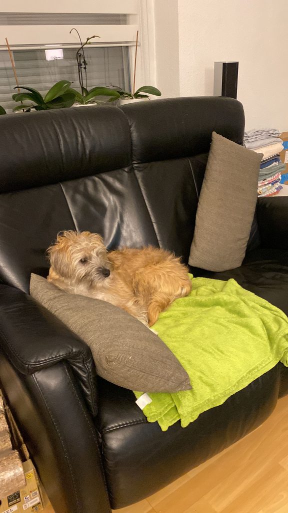 Ich habe mich superschnell in meinem neuen zu Hause eingelebt und es ist immer jemand für mich da, ich darf fast überall dabei sein und ich besuche mit meinen Menschen regelmäßig die Hundeschule, ich bin ein schlauer und aufmerksamer Kerli geworden und habe tolle Freunde hier im Ort gefunden und ich bin täglich viel in der Natur unterwegs, bei schönen Spaziergängen. Ängstlich bin ich nun nicht mehr so, nur so Landmaschinen sind schon riesig und laut hier auf dem Dorf.